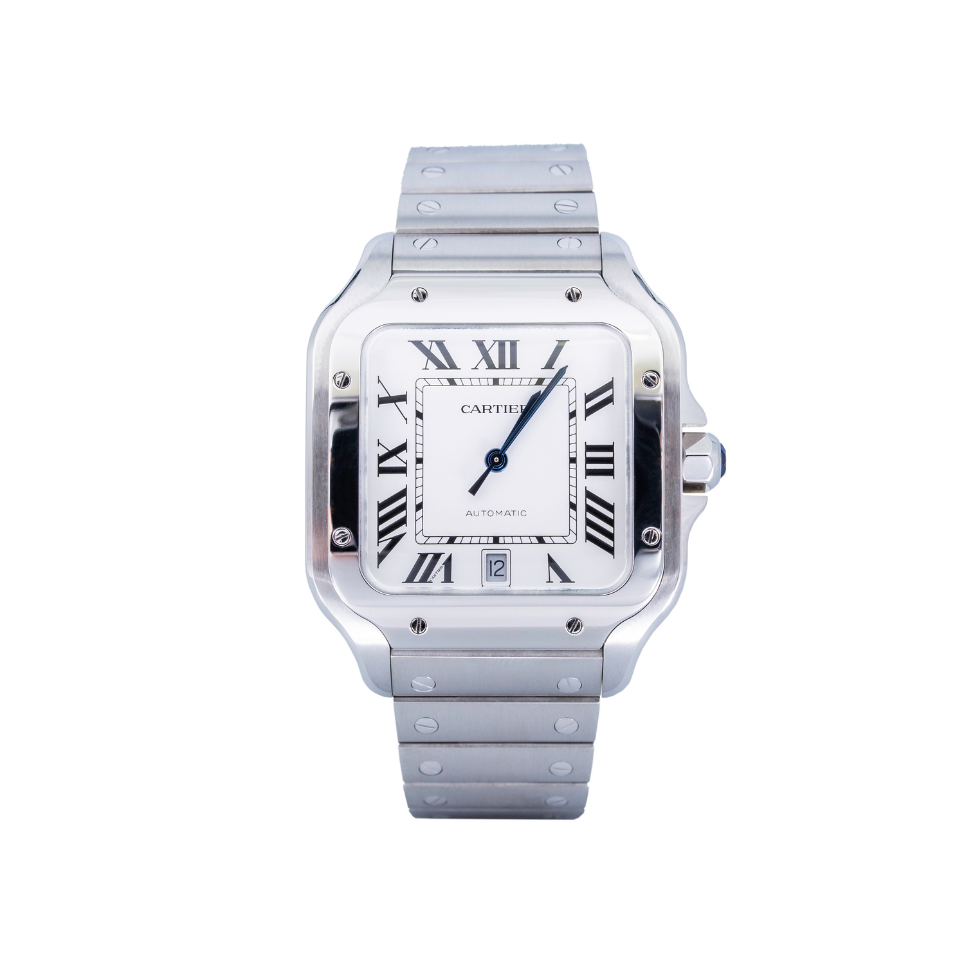 Cartier Santos de Cartier to elegancki zegarek, łączący nowoczesny styl z ponadczasową elegancją. Wyposażony w kopertę i bransoletę ze stali szlachetnej, jest idealny na każdą okazję. Dzięki szafirowemu szkłu, odpornemu na zarysowania, oraz automatycznemu mechanizmowi, zegarek oferuje trwałość i niezawodność. Jego głęboka, niebieska tarcza oraz funkcja daty dodają wyrafinowanego charakteru.
